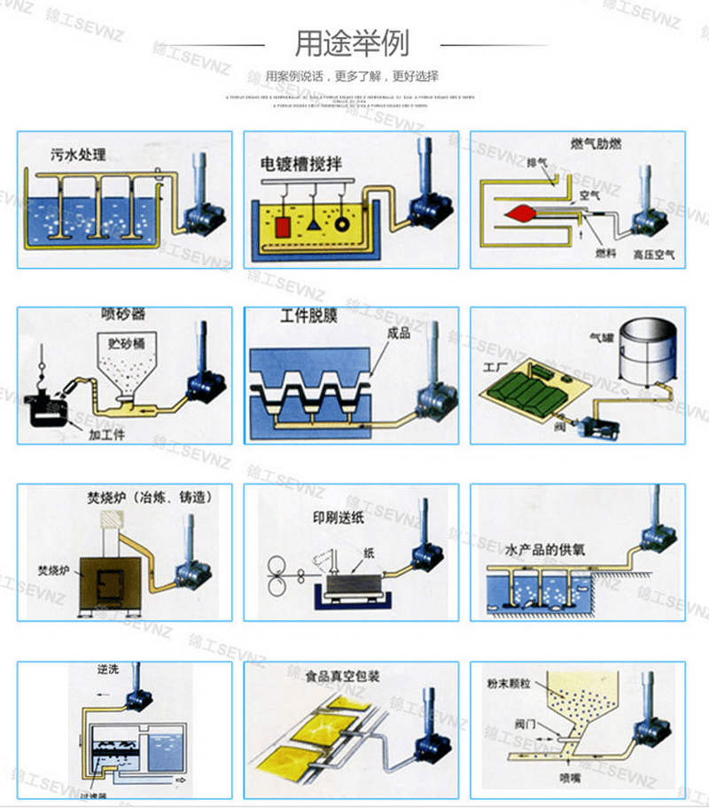 壓送用途:廢水處理,電鍍攪拌,曝氣增氧,氣力輸送,風(fēng)刀烘干,水泥機(jī)械,造紙設(shè)備,化工等。